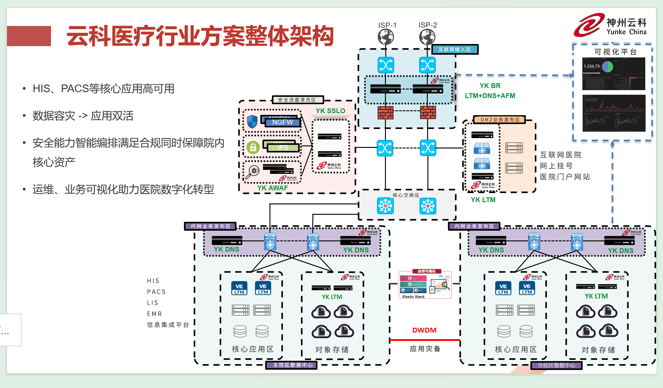 在电子病历4升5,以及互联互通五乙的评审要求中,均提出了核心系统RTO/RPO提出了小于15分钟的要求。BB贝博艾弗森应用双活解决方案,拥有国内最多的双活实施案例,帮助医院用户轻松实现HIS、PACS、EMR等核心应用在单院区出现故障时的快速转院区访问,保障了医院应用系统的高可用性和高可靠性。