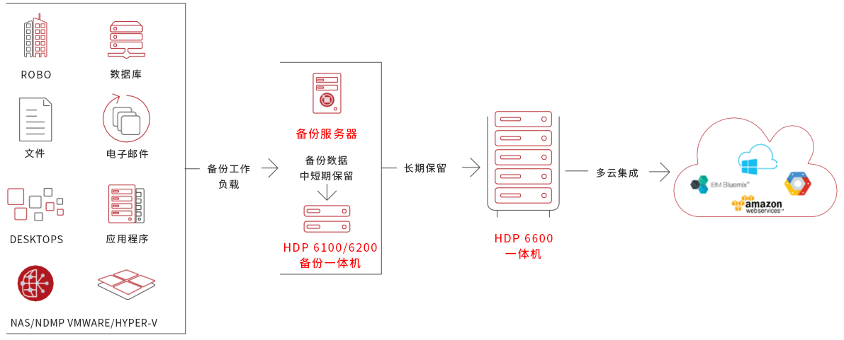 • HDP备份软件高度集成:提供一致的端到端长期数据保留和保护,并具有分类和备份功能